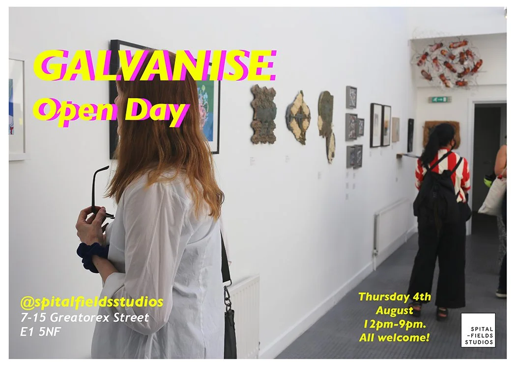 Join Spitalfields Studios artists and guests for our GALVANISE exhibition open day. Join us for a timely reflection on collective struggle, action and hope, spanning themes of migration, oppression, climate change, technology and mental health.